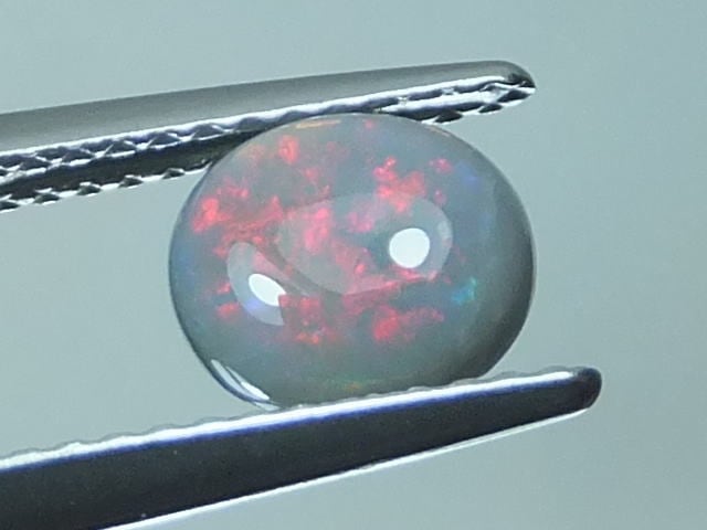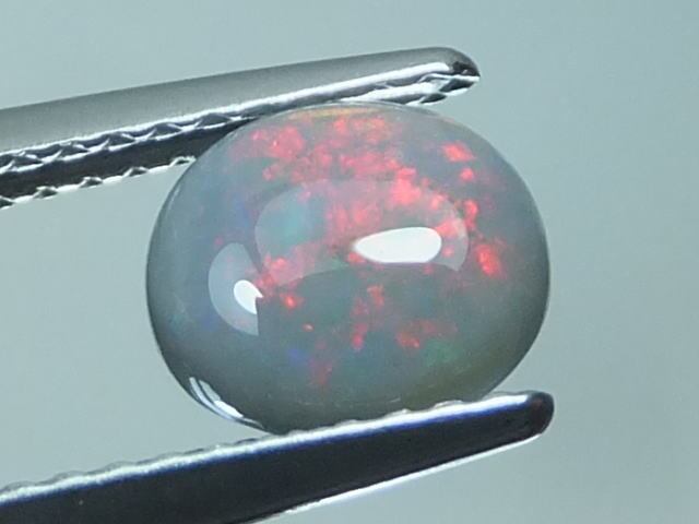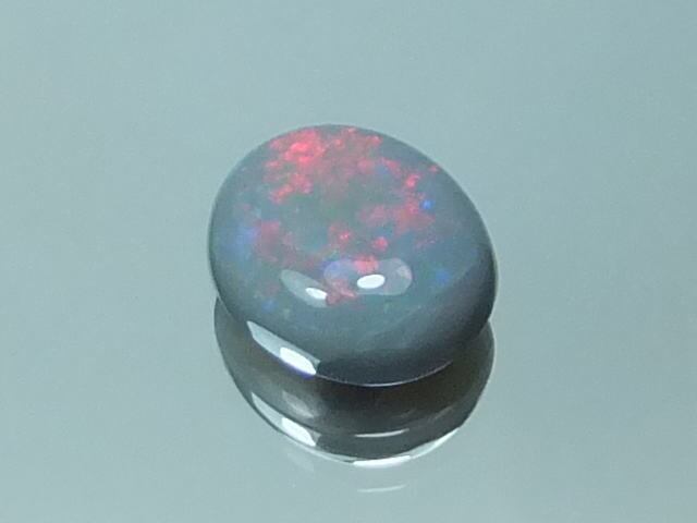 赤色遊色が観察できるセミブラックオパールになります。